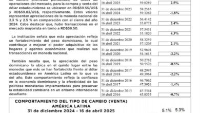 “Tasa de Cambio cae por debajo de RD$60.00 por dólar, alcanzando una apreciación de 2.5% al 16 de abril de…