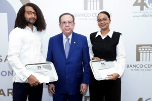 El cuarto premio fue para el trabajo titulado: Impacto del cambio climático en el crecimiento económico y la estabilidad financiera en la República Dominicana. Sus autores fueron Manuel Alberto Pérez Pérez y Ardanys Oscar González Marcano, quienes se llevaron RD$225,000 y bandeja de reconocimiento.