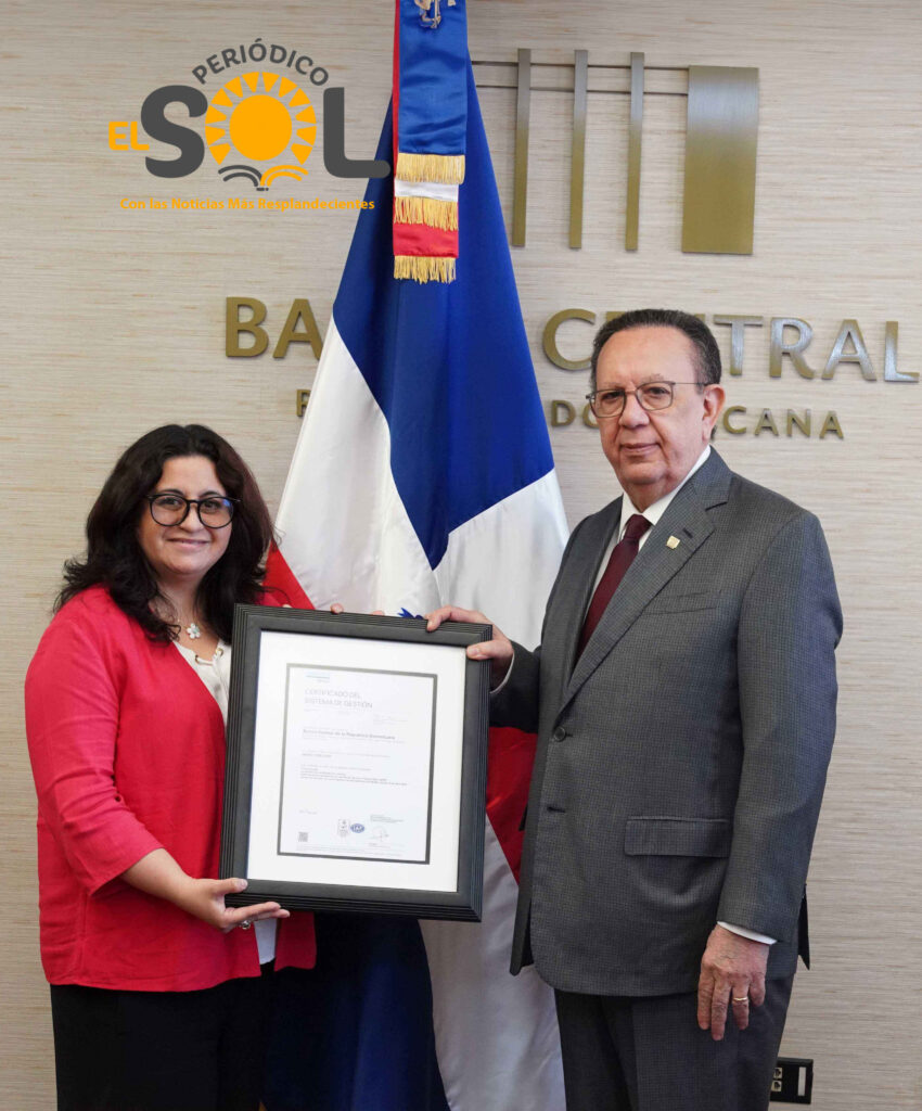 Santo Domingo. República Dominicana Miércoles 09 De Julio 2025.- El gobernador del Banco Central de la República Dominicana (BCRD), Héctor Valdez Albizu, recibió el título que acredita que la institución completó con éxito el proceso de recertificación en Gestión de Seguridad de la Información bajo la norma ISO 27001:2022, extendiendo su alcance al proceso de Administración del Sistema de Liquidación Bruta en Tiempo Real (LBTR).