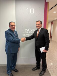 Durante su participación, Valdez Albizu sostuvo una importante reunión con el nuevo director del Departamento del Hemisferio Occidental del FMI, Nigel Chalk, y su directora adjunta, Dora Iakova, donde sostuvieron intercambios e impresiones sobre el contexto macroeconómico de la República Dominicana y las perspectivas de crecimiento e inflación en un entorno internacional de incertidumbre.