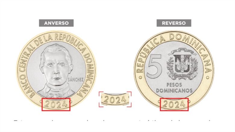 El Banco Central de la República Dominicana (BCRD) informó este jueves que a partir del próximo lunes 2 de febrero circularán las monedas metálicas de cinco pesos, año 2024.