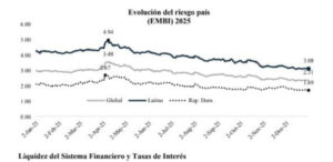 A este escenario se sumó la permanencia de tasas de interés internacionales en niveles relativamente elevados, lo que incidió en las condiciones financieras globales mas restrictivas y en los flujos de capitales más volátiles hacia las economías emergentes.
