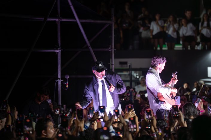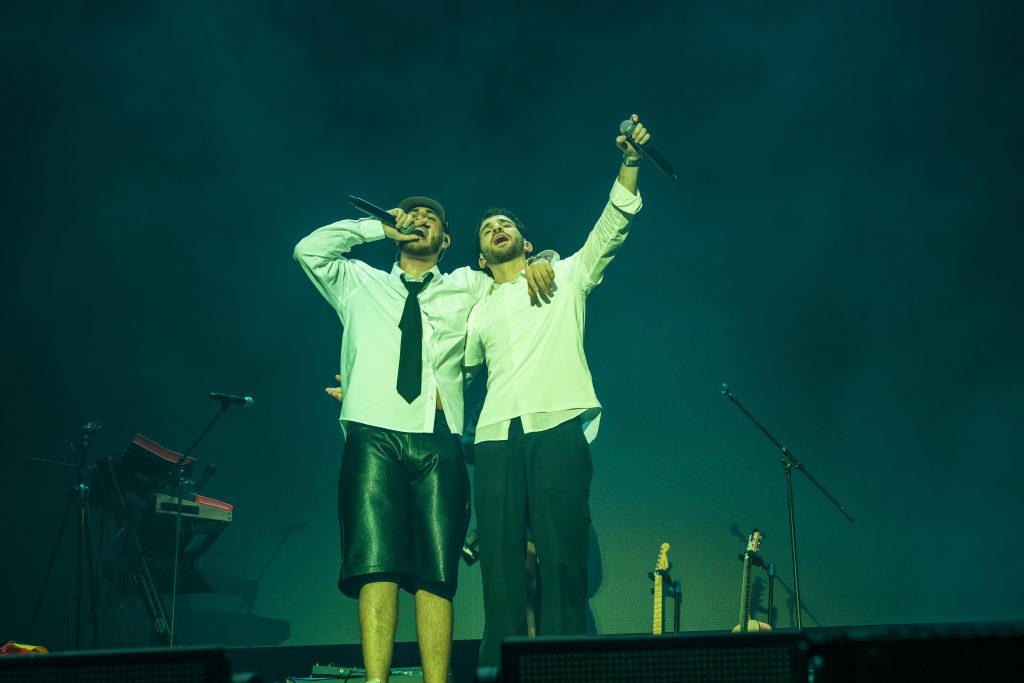 Uno de los momentos más destacados ocurrió durante “Ultravioleta”, interpretada inicialmente a capela y luego en su versión completa, mostrando la conexión del dúo con el público dominicano. Otro punto alto se produjo con “Capaz”, donde miles de asistentes acompañaron la interpretación de principio a fin.