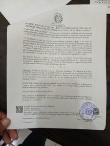 La sentencia fue emitida por la magistrada Odania LaPeax Mejía, jueza liquidadora de la Primera Sala Civil y Comercial de SDE, luego de que, según el demandante, él solicitara un pronto despacho, alegando que el expediente se encontraba en mora judicial.