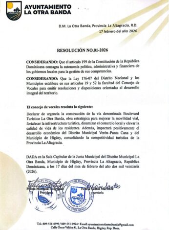 Con esta resolución, el Concejo y la Alcaldía consolidan una visión de desarrollo sostenible que posiciona a La Otra Banda como un punto estratégico dentro del crecimiento turístico y económico de la provincia La Altagracia.