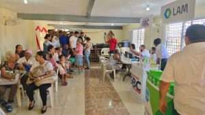 Durante la jornada de salud auspiciada por el Grupo GBC Farmacias, con el apoyo de Laboratorios Lam, Mamey Pharma, el Instituto Internacional de la Visión (INVIS) y el grupo odontológico Manos que Ayudan a Sonreír, los asistentes de distintas edades recibieron medicamentos, raciones alimenticias, kits de cloros desinfectantes, juguetes para los niños y canastillas para las embarazadas.