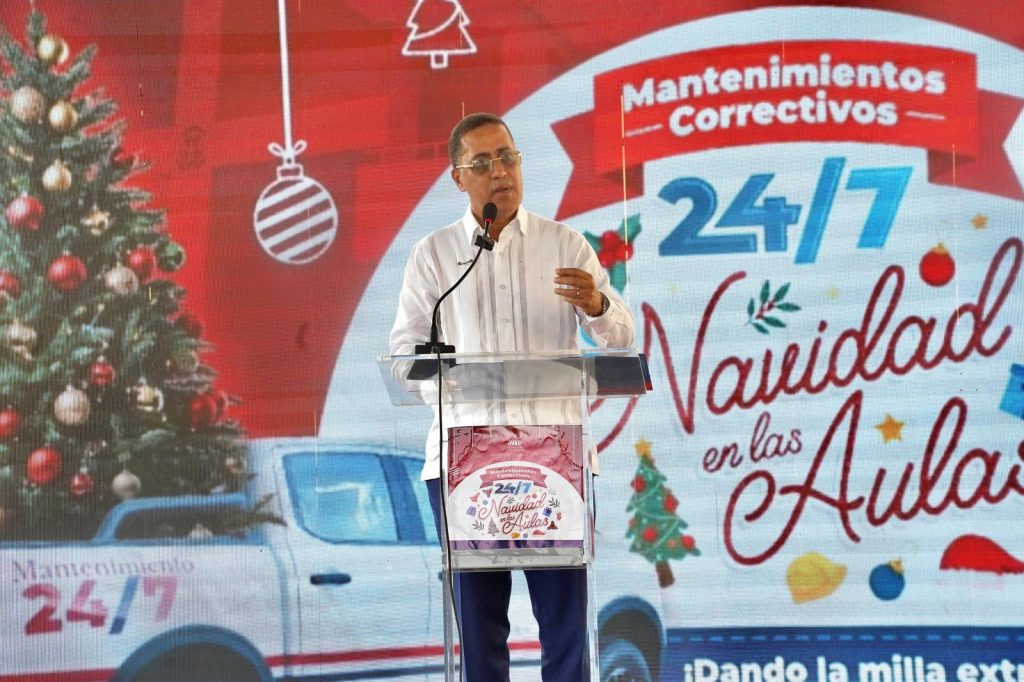 Con el plan «Navidad en las Aulas 24/7», que tiene una inversión estimada de 300 millones de pesos, Infraestructura Escolar implementa una amplia jornada de trabajo en todo el territorio nacional, para el remozamiento y reacondicionamiento de más de mil aulas, mientras los estudiantes, profesores y personal administrativo disfrutan de sus vacaciones de Navidad y fin de año, para que al regreso encuentren espacios adecuados y en óptimas condiciones, garantizando el fortalecimiento de la educación.