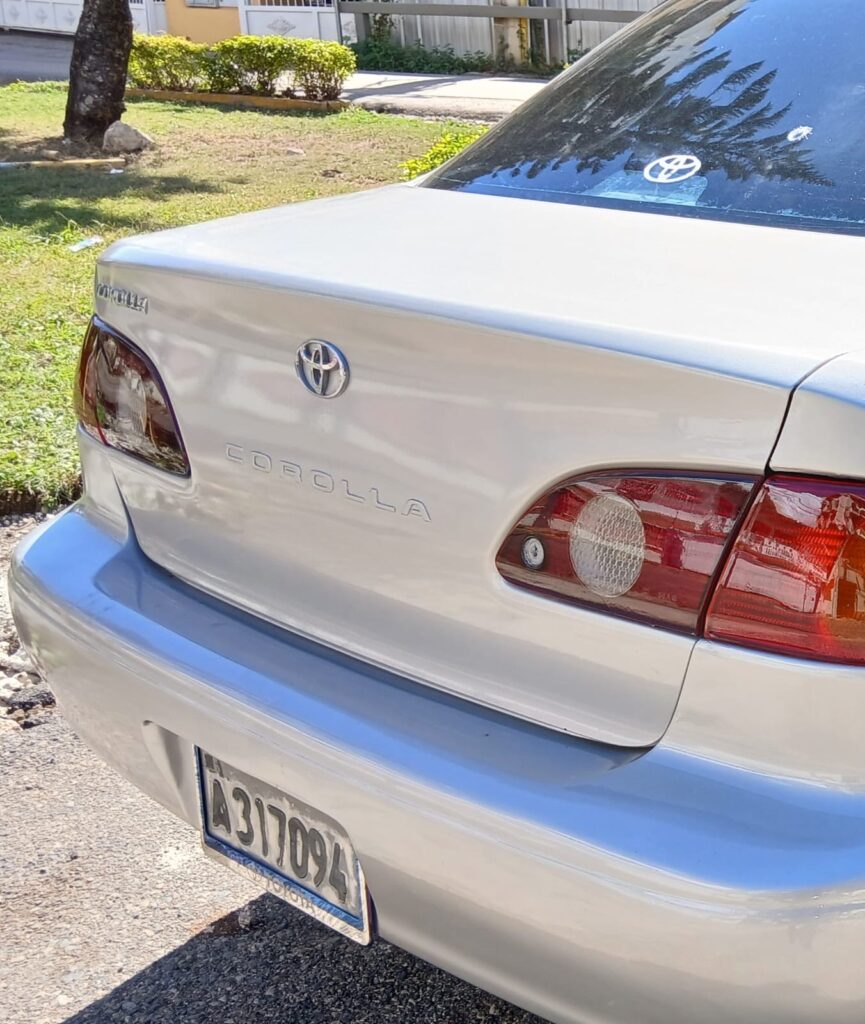 El vehículo es un Toyota Corolla 2001 gris, Placa A317094, Chasis 1NXBR12E41Z469028.