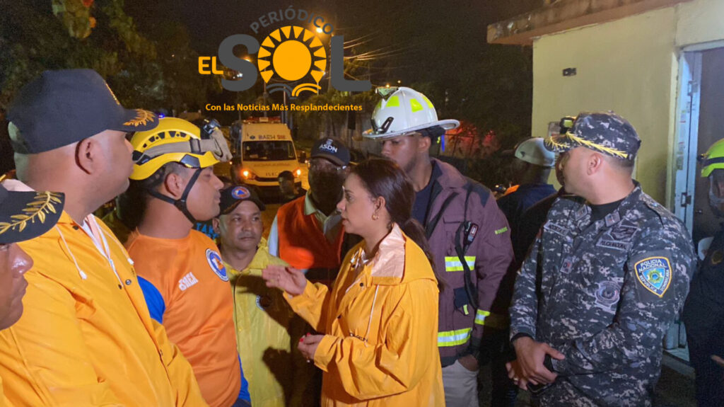 SANTO DOMINGO NORTE Jueves 05 De Junio 2025.- La alcaldesa del municipio Santo Domingo Norte, Betty Gerónimo, se trasladó personalmente al sector Villa de los Milagros, en la Avenida Jacobo Majluta, para supervisar de cerca las labores de búsqueda de una niña de cinco años que fue arrastrada por una cañada durante las lluvias de este jueves.