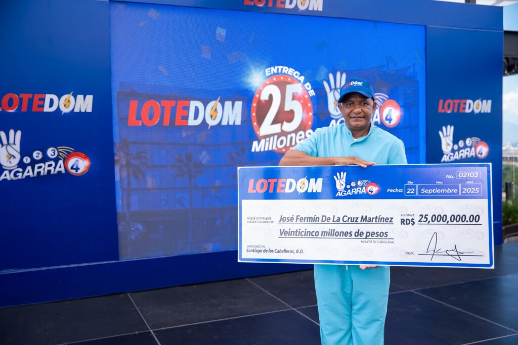 Santiago de los Caballeros, R.D.- 22 de septiembre de 2025. LOTEDOM, empresa líder en el sector de juegos de azar de República Dominicana, entregó RD$25 millones a José Fermín de la Cruz Martínez, sexto ganador del popular sorteo Agarra 4, reafirmando su compromiso de brindar oportunidades que transforman vidas.