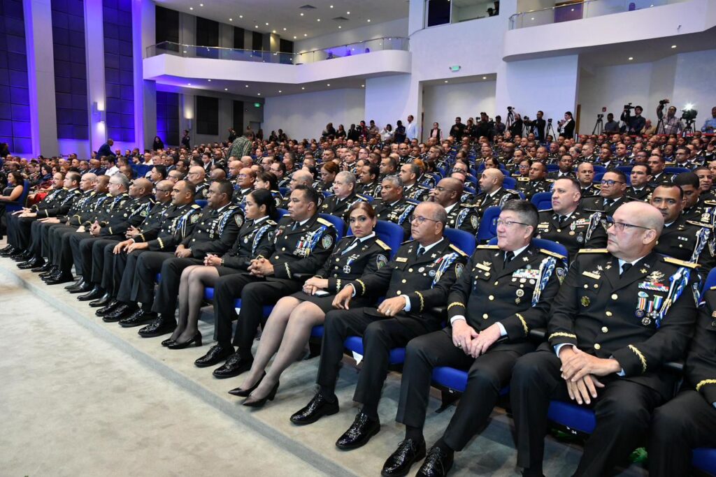 El acto de entrega de la Medalla al Mérito Policial, realizado con motivo del Día de San Judas Tadeo, patrono de la institución, fue encabezado por la vicepresidenta Raquel Peña; la ministra Raful, el director de la Policía Nacional, mayor general Ramón Antonio Guzmán Peralta, y el ministro de Defensa, teniente general Carlos Antonio Onofre Rojas.