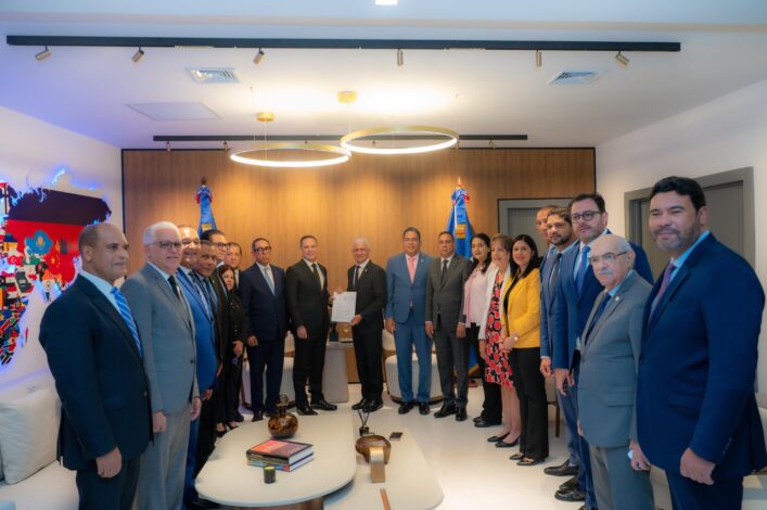 Santo Domingo Martes 28 De Octubre 2025.- El presidente del Senado, Ricardo de los Santos, recibió este martes al Pleno de la Suprema Corte de Justicia, encabezado por su presidente, Luis Henry Molina quien depositó un anteproyecto de modificación a los artículos 5, 12 y 14 de la ley que habilita y regula el uso de los medios digitales en el Poder Judicial.
