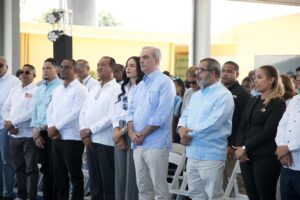 El presidente Abinader, acompañado de autoridades civiles y educativas, realizó el corte de cinta que dejó formalmente inaugurada la obra, la cual contó con la bendición del párroco Juan Mora, de la parroquia Nuestra Señora del Carmen.