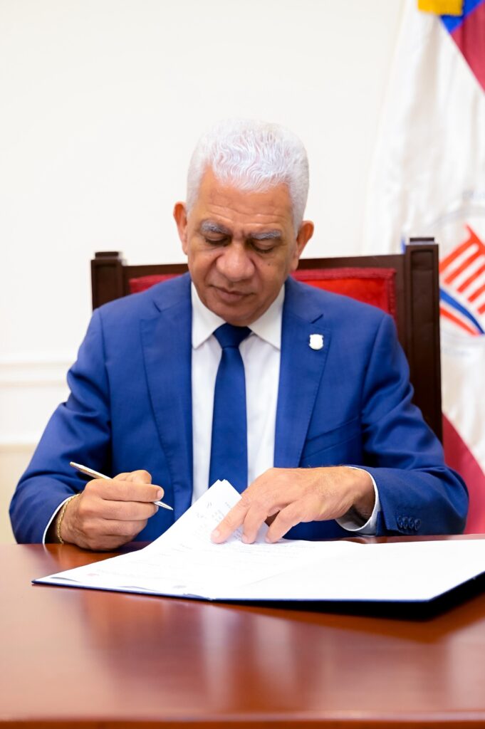 Acompañaron en la firma al presidente de la Cámara Alta los senadores Gustavo Lara, representante de San Cristóbal; Moisés Ayala, de Barahona; Dagoberto Rodríguez, de Independencia; Santiago Zorrilla, de El Seibo y Antonio Marte, de Santiago Rodríguez, así como funcionarios de la institución.