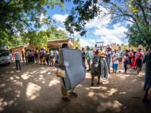 Durante la jornada, los voluntarios distribuyeron colchonetas, artículos para el hogar, electrodomésticos y kits de limpieza y primeros auxilios, con el objetivo de brindar apoyo inmediato a las familias impactadas por las recientes lluvias.
