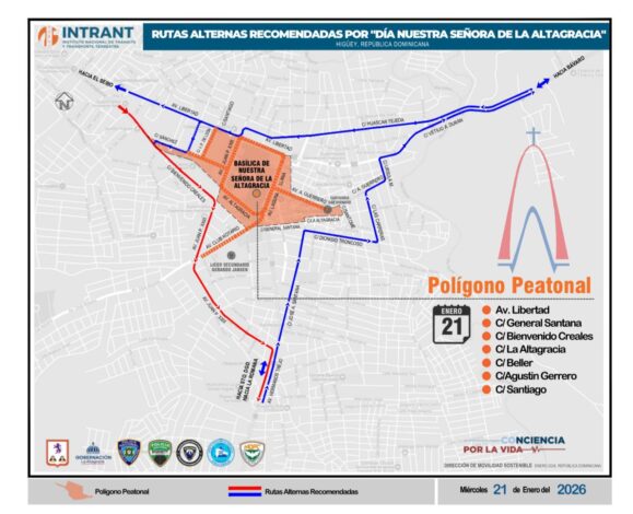 Como parte de las medidas preventivas, las autoridades establecieron un polígono peatonal en el entorno de la Basílica Catedral Nuestra Señora de la Altagracia, en la avenida Libertad y en las calles General Santana, Bienvenido Creales, La Altagracia, Beller, Agustin Guerrero y la calle Santiago, con el objetivo de proteger la integridad física de los miles de feligreses que acuden al templo y garantizar un flujo vehicular ordenado en la ciudad de Higüey.