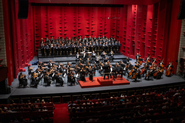 Allí el público fue testigo de una gala de alto nivel artístico, bajo la dirección coral del maestro Elioenai Medina y la dirección orquestal del maestro José Antonio Molina, frente a la imponente Orquesta Sinfónica Nacional. Una unión poderosa entre dos instituciones que son pilares de la vida cultural dominicana.